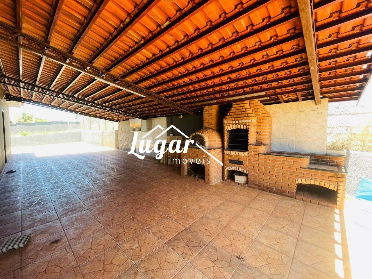 Imóvel dividido em 03 dormitórios, 01 sala ampla, 01 cozinha, 02 banheiros, área de lazer com churrasqueira e forno a lenha, área de serviço, amplo espaço para plantações e garagem ampla.